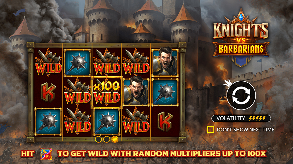 Knights vs Barbarians is a high-energy medieval-themed slot from Pragmatic Play that drops players straight into a brutal clash of steel, shields, and opposing ideologies, where every spin feels like a small skirmish in a much larger war. Inspired by classic medieval conflicts that echo the rivalry between disciplined knights and ferocious barbarian warriors, the game leans heavily into its battlefield atmosphere, blending dramatic visuals, war-torn soundscapes, and action-driven mechanics. What truly sets this slot apart is how its theme directly influences gameplay, especially through the central reel mechanic that can radically shift outcomes mid-spin. With a max win of 10,000x the bet, high volatility, and a feature-rich structure built around conversion Wilds and massive multipliers, the slot is clearly designed for players who enjoy risk, anticipation, and explosive payoff potential wrapped in a cinematic medieval narrative.