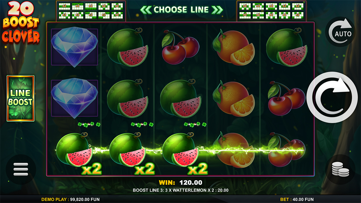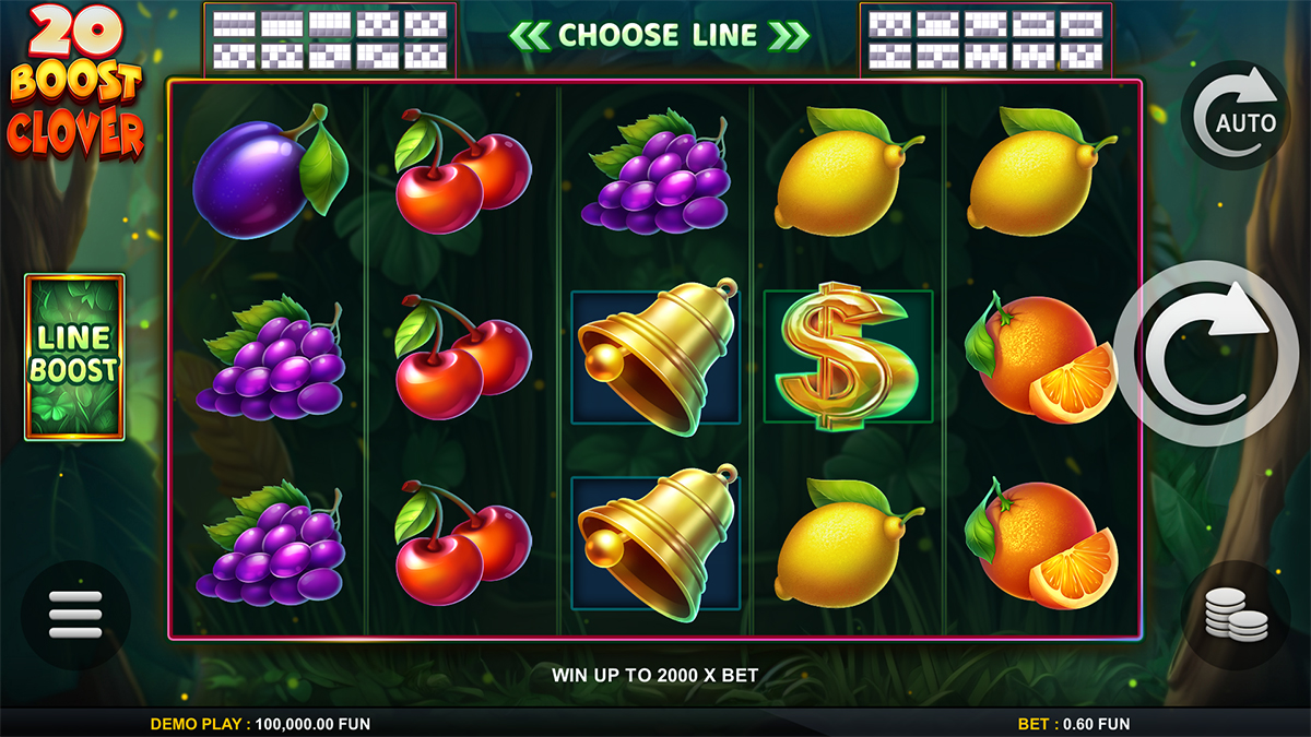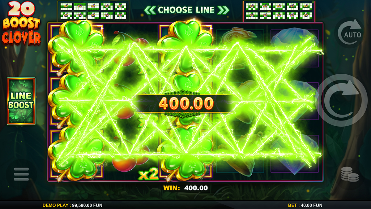 20 Boost Clover features 20 fixed paylines spread across its 5×3 reel layout. These paylines are always active, ensuring consistent coverage and frequent win opportunities. However, players can selectively boost individual lines for multipliers of x2, x3, or x5, adding a unique strategic dimension to every spin.