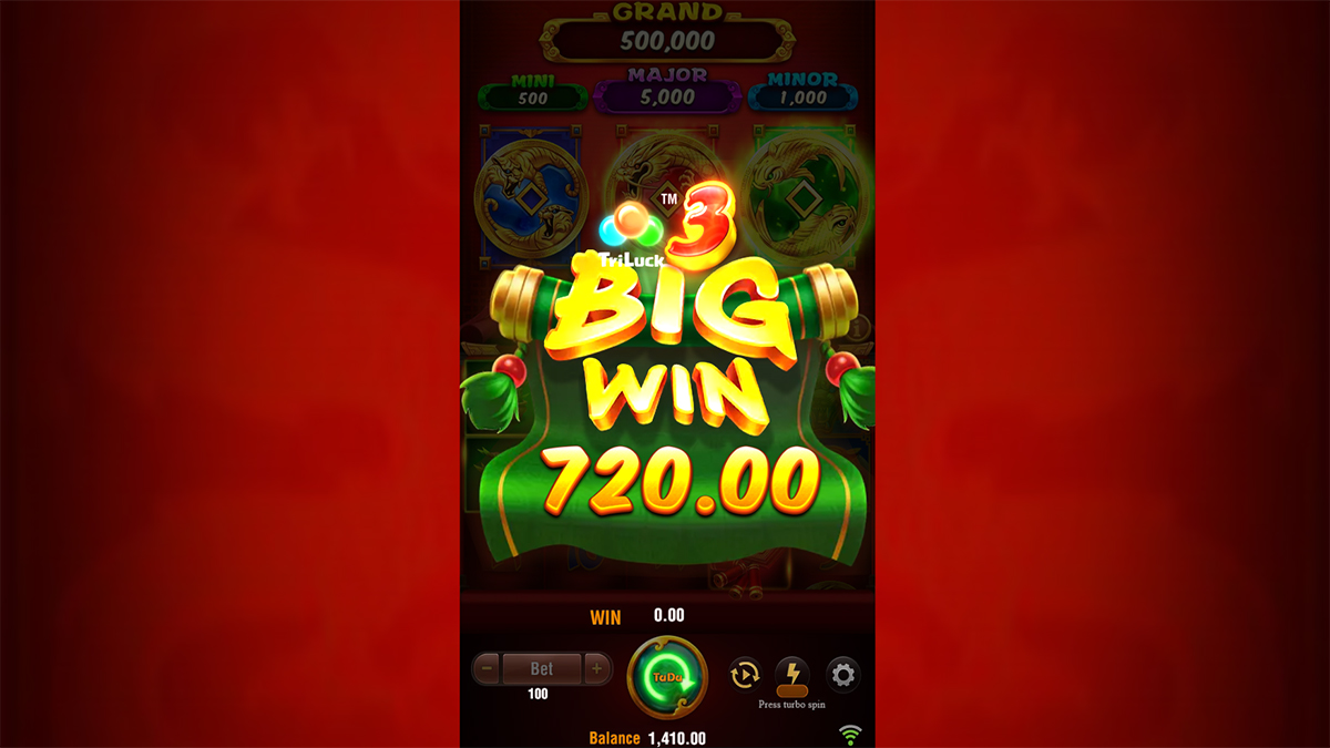 • TriLuck: Activates special free gameplay when Dragon, Koi, or Tiger coins land, with combined effects if multiple coins appear.