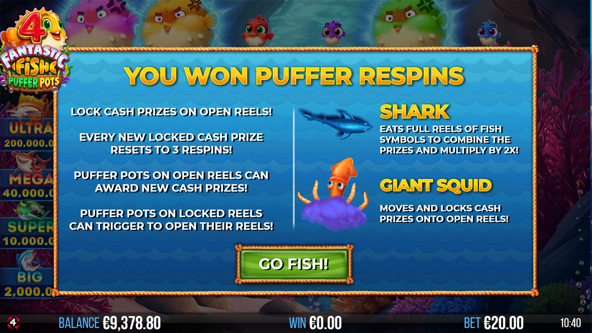 4 Fantastic Fish Puffer Slot Free Spins Round
