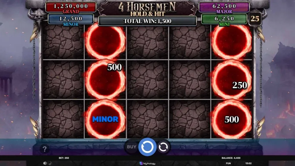 4 Horsemen by Spinomenal merges a dark, evocative theme with high volatility and robust features, crafting a slot that stands out for its intensity. The potential x1500 maximum win, paired with mechanics like Hold & Hit and Free Spins, offers a compelling draw for players seeking substantial rewards. Its broad betting range and device compatibility further widen its appeal, catering to varied preferences and play styles. The game’s design, rooted in chaos and power, ensures each spin carries a sense of stakes and possibility, making it a strong contender in the slot lineup.