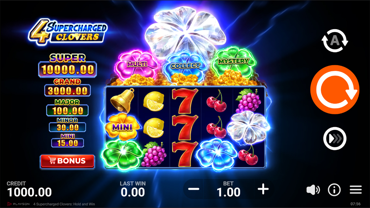 The demo version of 4 Supercharged Clovers: Hold and Win allows players to experience the full gameplay and feature set without risking real money. This is especially useful for understanding how the Hold and Win mechanics, expanding grids, and jackpot conditions work in practice. Playing in demo mode gives users the chance to explore betting strategies, evaluate the game’s pacing, and decide whether its volatility suits their preferences. It’s an ideal way to get comfortable with the slot before committing to real-money spins.
