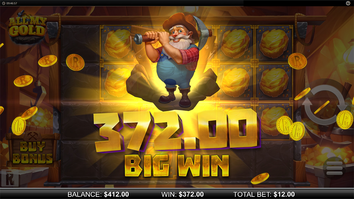 All My Gold is classified as a medium volatility slot, offering a balance between win frequency and payout size. Players can expect a mix of smaller, regular wins alongside the potential for larger payouts during bonus rounds. This volatility level makes the game suitable for extended play sessions without extreme swings.