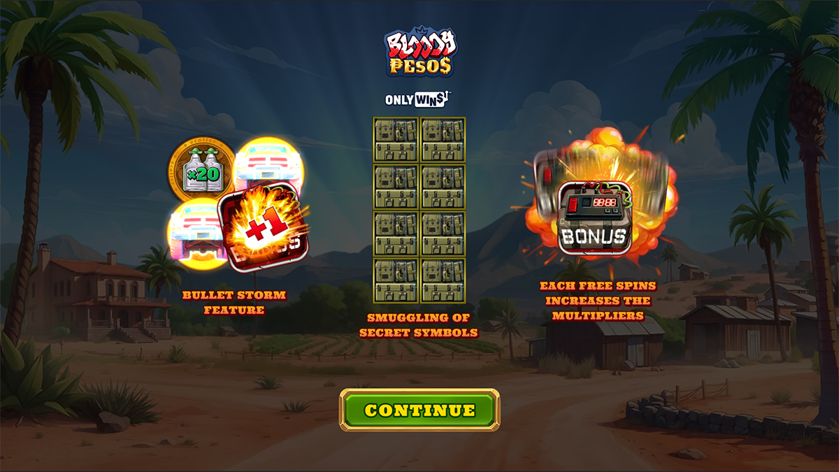 Bloody Pesos packs a collection of explosive features that blend perfectly with its high-stakes theme. The game’s Mystery Stacks drive much of the excitement, constantly revealing symbols or triggering respins through the Smuggle and Uncover mechanic. Meanwhile, the Bullet Storm and Cartel Carnage Free Spins offer the best chances for massive multipliers and extended play. The Only Wins Mode and Feature Buy options give players control over how they experience the chaos — whether chasing guaranteed wins or diving directly into the heart of the cartel’s bonus rounds.