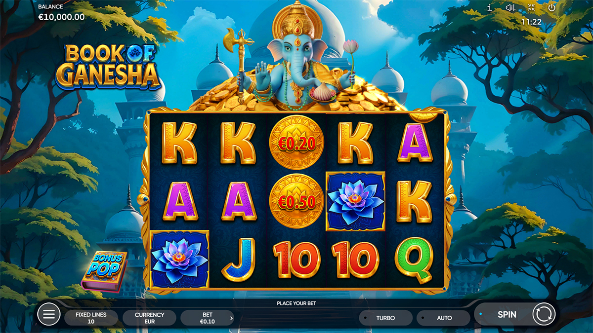 Book of Ganesha features a total of 10 fixed paylines. These paylines run from left to right across the 5-reel layout. This structure keeps gameplay simple and easy to follow for most players.