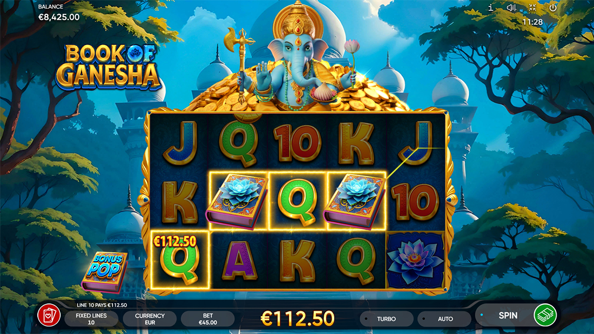 The betting limits in Book of Ganesha range from a minimum bet of 0.1 to a maximum bet of 45 per spin. This wide range makes the slot suitable for both casual players and high rollers. Players can easily adjust their wager to match their bankroll and play style.