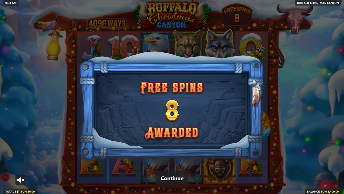Yes, Buffalo Christmas Canyon includes a robust Free Spins round as its primary bonus feature. The feature is triggered by landing three or more Scatter symbols anywhere on the reels. During Free Spins, players can benefit from expanding wilds, multipliers, and the chance to retrigger additional spins.