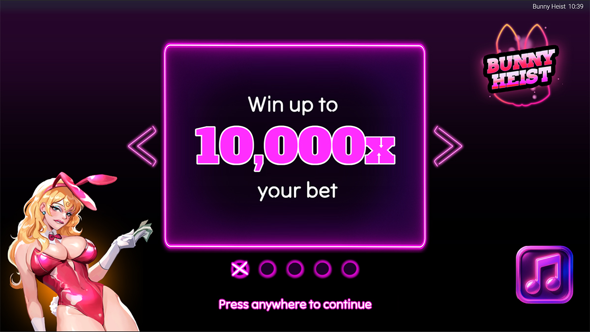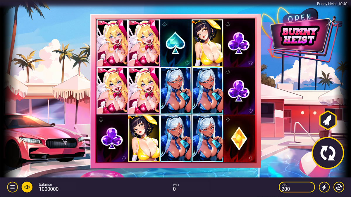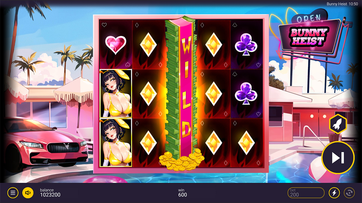 Bunny Heist is a slot that very deliberately leans into style, attitude, and spectacle, presenting itself as a glamorous casino crime caper rather than a traditional reel-spinning experience. Built around a provocative bunny-themed aesthetic and a slick heist narrative, the game immediately signals that it is targeting players who enjoy bold visuals and feature-driven gameplay over safe or familiar design choices. With a 5×3 layout, 10 paylines that pay both ways, and a clearly advertised 10,000x maximum win, Bunny Heist positions itself as a high-impact slot where the real excitement comes from explosive feature moments rather than slow, incremental base-game payouts. The combination of expanding wilds, two distinct bonus rounds, and optional enhancement mechanics like Golden Bet and Feature Buy creates a framework that feels modern, aggressive, and intentionally tuned for players who want volatility, risk, and cinematic payoff packed into a compact reel set.