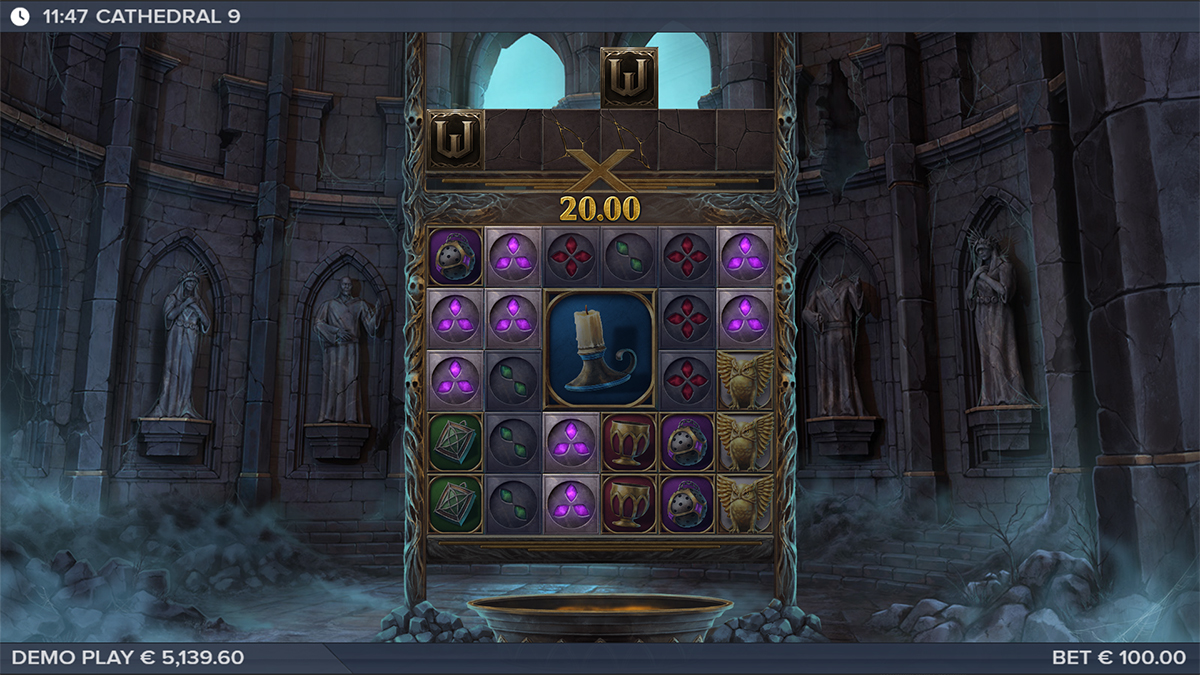 Cathedral 9 does not use traditional paylines and instead operates on a scatter pays system. Wins are created when 8 or more matching symbols appear anywhere on the 6×5 grid, offering more dynamic and unpredictable results. This system enhances the excitement of each spin and provides the chance for multiple cascading wins in a single round.
