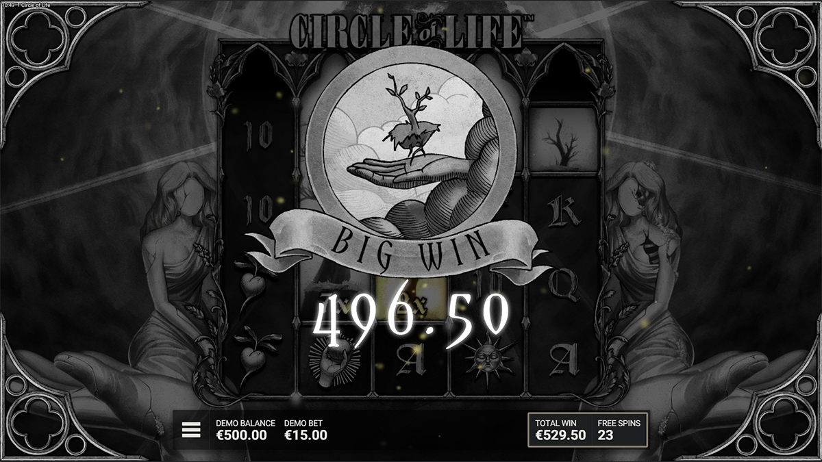 Circle of Life ThumbnailCircle of Life by Hacksaw Gaming presents a darkly enchanting slot experience that blends mythological symbolism with modern high-volatility design, creating a game that feels both atmospheric and mechanically rich. Set within a haunting monochrome forest environment, the slot revolves around the symbolic Tree of Life, a centerpiece that drives both the narrative tone and the core gameplay mechanics. Unlike typical nature-themed slots that lean toward colorful optimism, Circle of Life opts for a mysterious and almost ritualistic aesthetic that reinforces its themes of rebirth, continuity, and interconnected realms. The slot builds tension through powerful multipliers, chained respins, and layered bonus modes that can dramatically alter outcomes. With a maximum win potential of 15,000x and several escalating bonus paths, the game appeals to players who enjoy dramatic swings and feature-driven gameplay, while also maintaining a clean and immersive presentation that keeps the focus on strategic symbol interactions and expanding win opportunities.