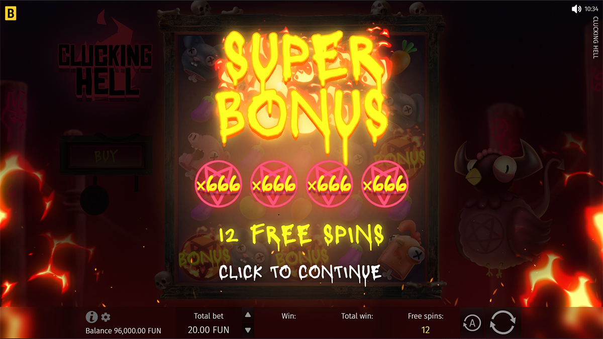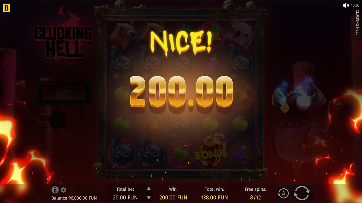 The maximum win in Clucking Hell is an impressive 6,666x the stake, offering a devilishly rewarding top prize for those who manage to unlock its full potential. At the minimum bet of €0.20, this equals a payout of €1,333.20, while the maximum bet of €20 can yield a staggering €133,320. Such a massive payout opportunity makes the slot especially appealing to high-volatility thrill seekers.