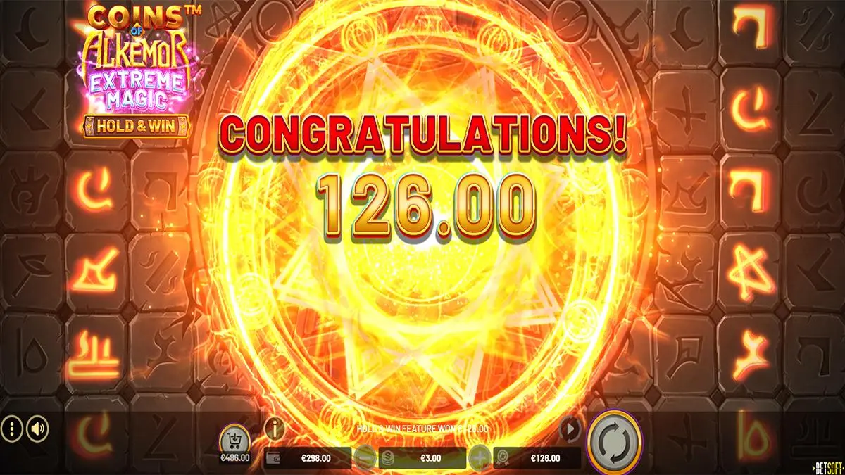 There is no traditional free spins round in Coins of Alkemor: Extreme Magic – Hold & Win, but it compensates with an enriched Hold & Win bonus feature. This bonus, triggered by specific symbol combinations, acts similarly to a respin round, providing extended playtime and enhanced win potential. Instead of free spins, players are rewarded with a more interactive and rewarding format through respins and special modifiers.
