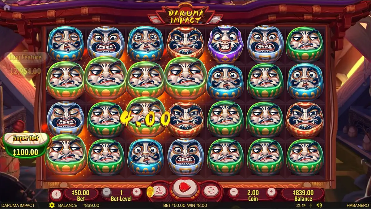 Daruma Impact by Habanero offers a solid Return to Player (RTP) rate of 96%, which is well-aligned with the industry average for modern online slots. This means that over a long gameplay session, the game is designed to theoretically return 96% of all wagers to players. While actual outcomes will vary in the short term, the RTP provides a strong foundation for consistent engagement.
