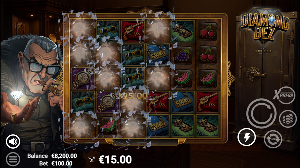 The gameplay in Diamond Dez revolves around its Pay Anywhere system, which eliminates traditional paylines and allows wins to form from anywhere on the reels when 8 or more matching symbols appear. This approach makes every spin unpredictable and visually exciting, as symbols cascade and create new opportunities for chain reactions of wins. Cascading reels ensure that winning symbols are replaced by new ones, potentially triggering further payouts in a single spin. Combined with the random activation of expanding wilds and multiplier vaults, every round feels alive with potential, offering a fast-paced rhythm that keeps players engaged from start to finish.