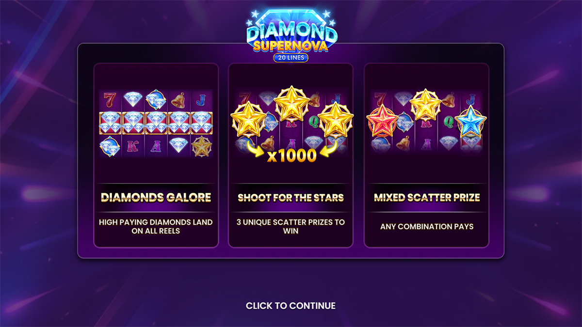 Diamond Supernova 20 keeps its feature set intentionally minimal to preserve clarity and consistency. The focus is placed entirely on symbol combinations and scatter payouts rather than layered mechanics. This design choice ensures fast gameplay and easy bankroll tracking.