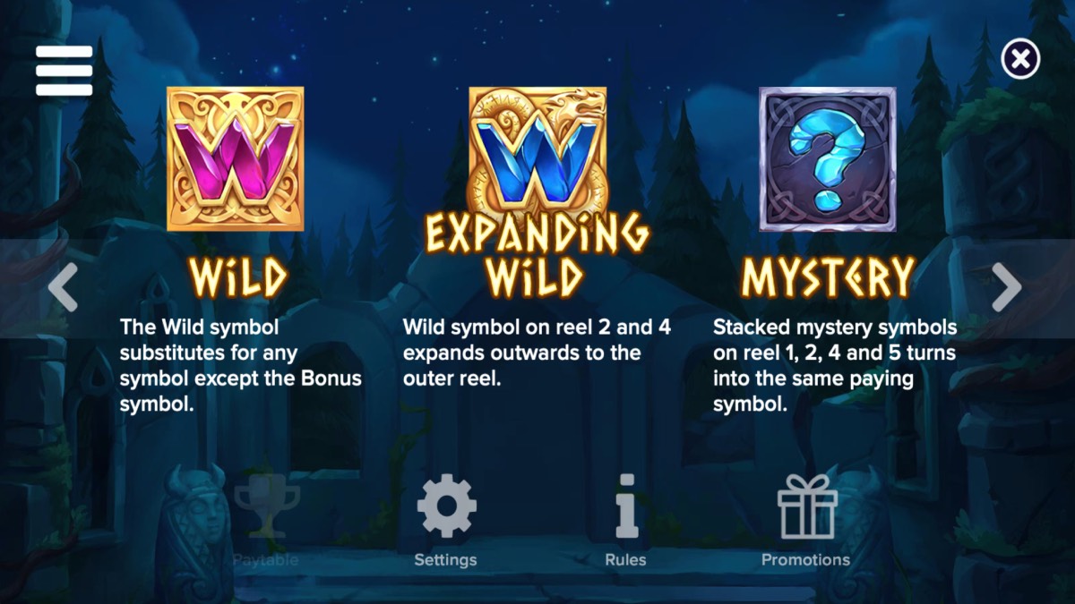 The slot features a range of fantasy-themed symbols, including regular and special wilds that enhance winning potential. The standard wild can actually appear on any reel and substitutes for all pay symbols, while Expanding Wilds, which land only on reels 2 and 4, stretch horizontally to cover adjacent positions, guaranteeing a win with any symbol caught in the middle. Mystery Symbols appear on all reels except the center, transforming into a randomly selected matching symbol, often creating additional wins and playing a key role in the bonus round.