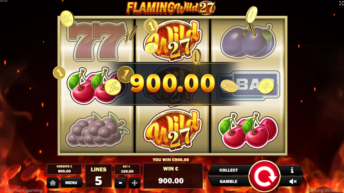 “Flaming Wild 27” by Tom Horn Gaming offers a low volatility gaming experience, which means that players can expect frequent but smaller wins as they spin the reels.
