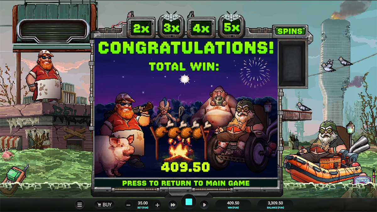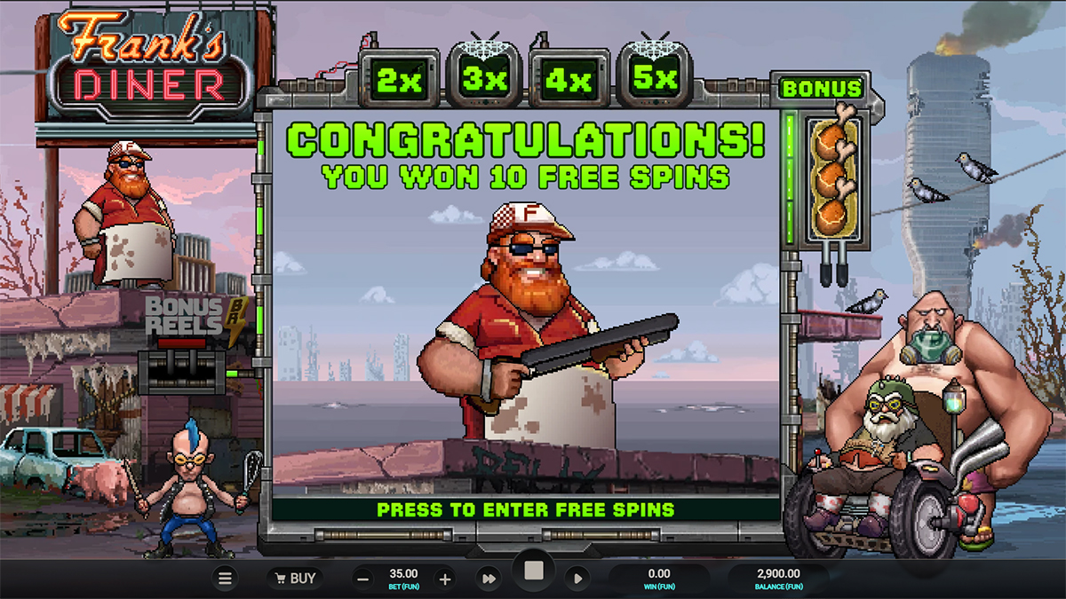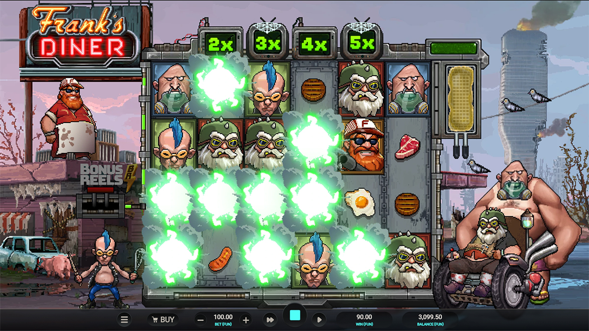 Frank’s Diner by Relax Gaming stands out as a brilliantly chaotic yet highly entertaining slot that fuses nostalgia, creativity, and innovative gameplay mechanics into one unique experience. Its darkly humorous take on a post-apocalyptic diner setting, combined with its 8-bit graphics and energetic soundtrack, makes it visually striking and thematically cohesive. The gameplay is rich and layered, featuring cascading wins, Split Symbols, multiplier wilds, and a rewarding Free Spins round that keeps the excitement alive with every spin. The balance between its medium volatility and a fair 96.10% RTP ensures that players enjoy frequent wins while still having the chance to land massive payouts of up to 10,000x their stake. From its dynamic reel multipliers to the thrilling respins and Win Boost mechanics, every feature adds value and variety. Whether played on desktop or mobile, Frank’s Diner delivers an engaging experience that combines artistic charm with serious winning potential, making it one of Relax Gaming’s most inventive releases to date.