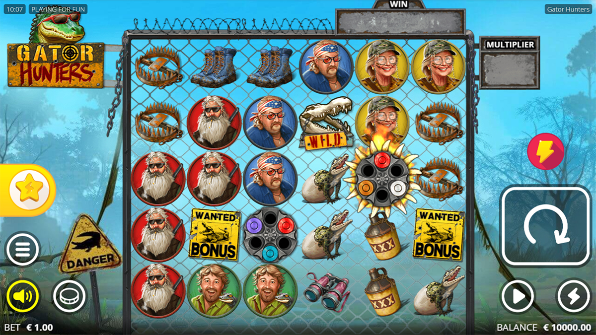 The high-paying symbols in Gator Hunters embody the essence of swamp life and the thrill of the chase. These premium icons include menacing gators, fearless hunters, and weapons of survival — each rendered in gritty detail to capture the danger of the wetlands. The gator, naturally, stands as the most lucrative symbol, symbolizing both threat and reward. These symbols deliver substantial payouts when landing eight or more of a kind, and because wins operate on the scatter-pay system, they can appear anywhere on the reels to grant rewards. The high-paying icons often serve as the foundation for massive chain reactions, especially when paired with multipliers from Wilds or Revolvers, amplifying both their thematic presence and financial significance within gameplay.