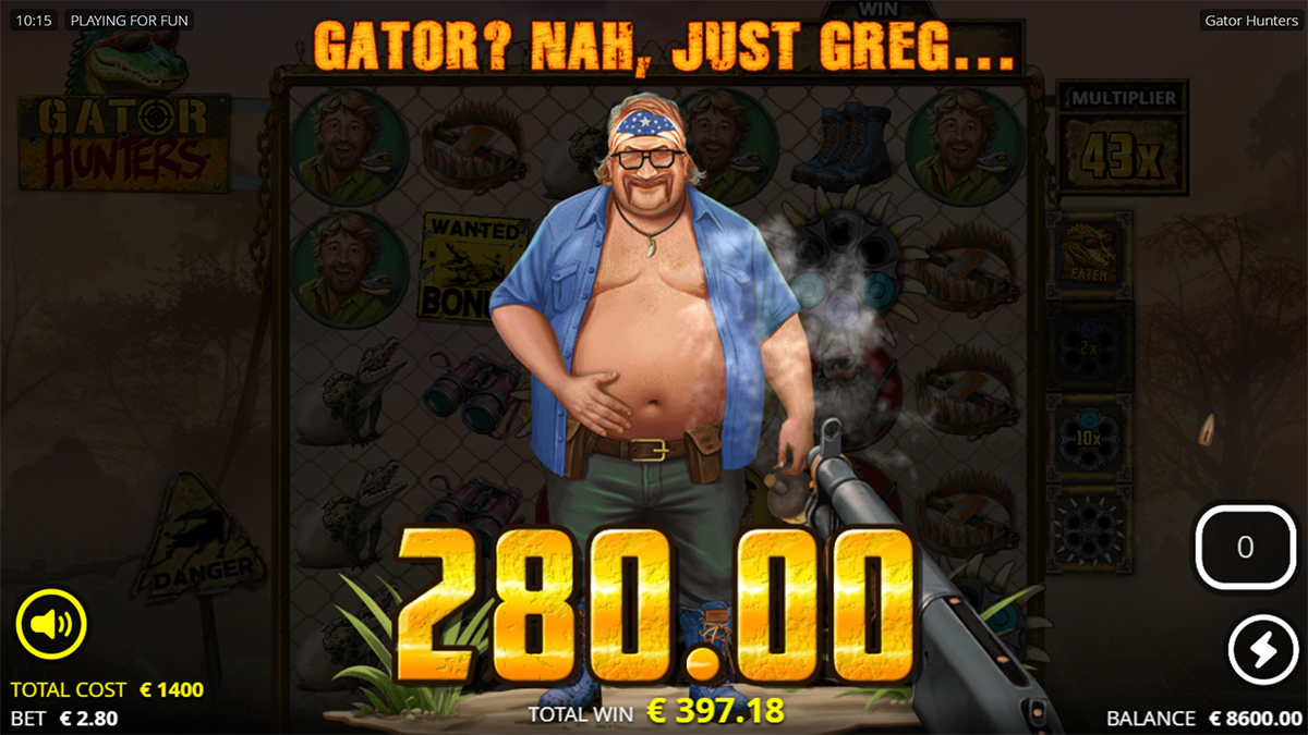 The betting range in Gator Hunters is designed to accommodate all player types, with minimum bets starting at €0.20 and maximum bets reaching €100.00 per spin. This flexibility allows both cautious players and high rollers to engage in the hunt with comfort and control over their bankrolls. Considering the max payout of 25,000x your bet, a minimum stake could yield an impressive €5,000 (0.20 x 25,000), while a max stake could potentially bring in a colossal €2,500,000 (100 x 25,000). This remarkable potential underscores the game’s appeal, offering not just a captivating theme but truly life-changing rewards. Such range also ensures that the intensity of the experience remains accessible, no matter your playstyle or budget.