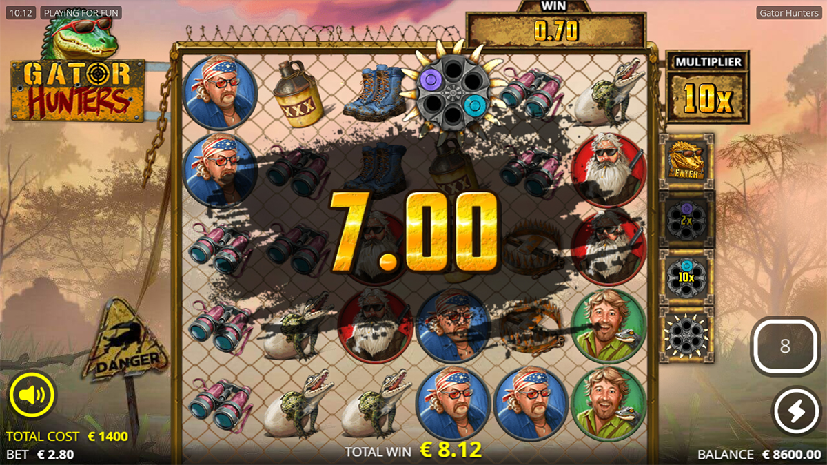 Unlike traditional slots, Gator Hunters uses a Scatter Pays system rather than fixed paylines. Wins are awarded when 8 or more matching symbols land anywhere on the reels, giving players flexible and unpredictable winning opportunities. This mechanic enhances the excitement of every spin, as large clusters of symbols can trigger cascading wins and high-value combinations.