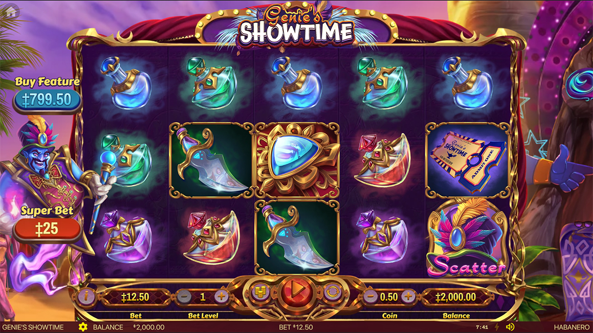 Genie’s Showtime by Habanero delivers a visually stunning and thematically rich slot experience that combines the wonder of mystical magic with the flair of theatrical illusion. Its 5×3 reel setup and 25 paylines provide a balanced foundation for exciting gameplay, while the array of unique features ensures that no two sessions feel the same. The slot’s high volatility adds tension and anticipation, with each spin holding the potential for a spectacular win—especially when the Genie himself steps onto the stage to perform his enchanted tricks. The multiple RTP settings are a smart inclusion, catering to various operator preferences while allowing players to seek out the higher-paying configurations for the best long-term value. The attention to detail in both sound and design elevates Genie’s Showtime beyond a standard slot; the bright lights, shimmering potions, and lively genie animations create a performance that feels alive with energy and charm. Though the top payout of 3,416x may not reach the heights of some other high-volatility slots, the game’s combination of style, strategy, and reward potential ensures that it remains a highly engaging experience from start to finish. Genie’s Showtime ultimately succeeds as a fusion of artistry and gameplay depth—an enchanting performance that invites players to step into a magical world where every spin could reveal the next great trick.