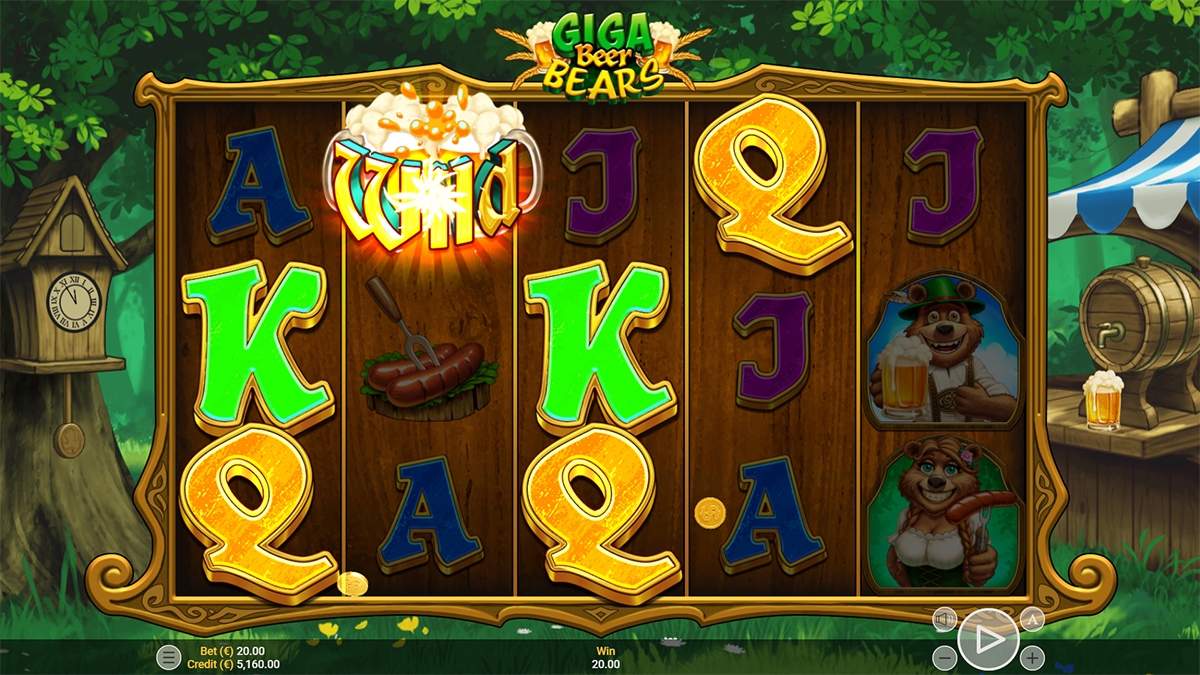 Giga Beer Bears operates on a fixed 20-payline structure, ensuring that all paylines remain active on every spin. This setup gives players multiple opportunities to form winning combinations without adjusting line numbers. It creates a straightforward and engaging gameplay flow where every spin contributes to the festive excitement of the Oktoberfest-themed slot.