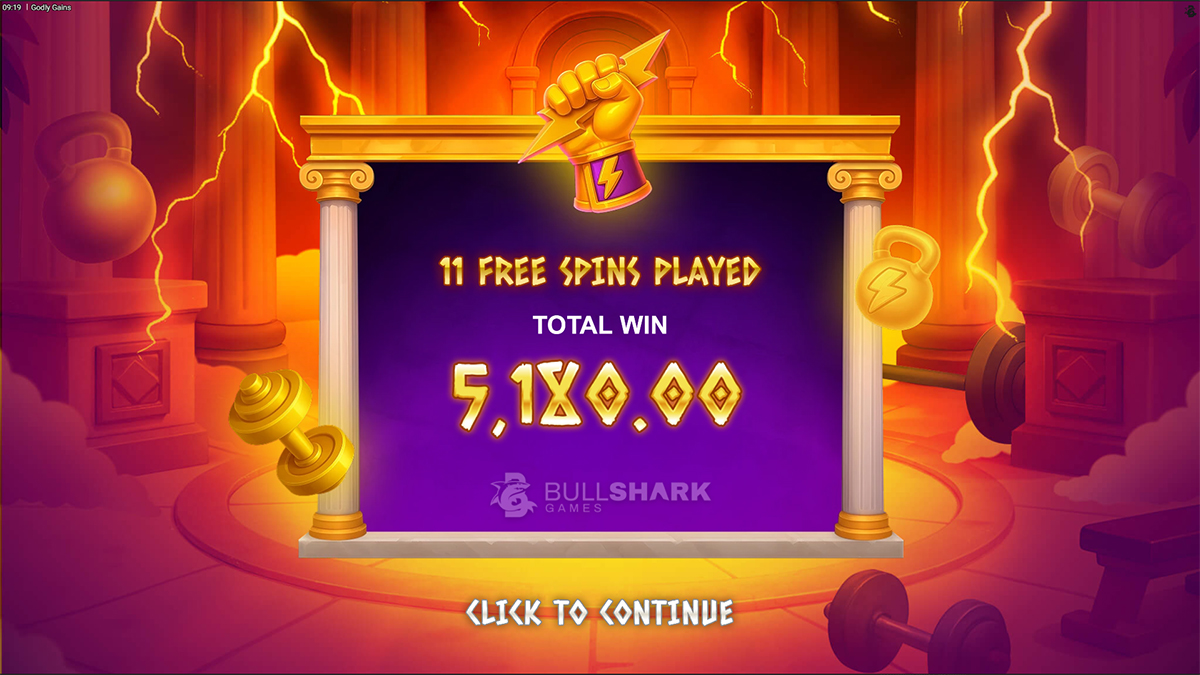 Godly Gains by Bullshark Games is a refreshing and humorous take on Greek mythology, merging divine strength with gym-inspired energy to deliver a slot that feels both playful and powerful. With its 6×6 grid, cascading cluster pay mechanic, and a wealth of exciting features such as the Global Multiplier, God Mode, and Thunderstrike symbols, this game offers a dynamic flow of continuous action. The theme is expertly executed with crisp cartoon-style visuals, bright golden tones, and engaging animations that bring Zeus’s workout sessions to life, making each spin feel like part of a larger divine training montage. The blend of high volatility and a maximum win potential of 15,000x the bet ensures that every session carries thrilling potential for big rewards, while the free spins rounds provide the key moments of high-intensity excitement where multipliers and wilds stack in exhilarating fashion. Whether you’re drawn in by the unique concept, the humor, or the impressive gameplay mechanics, Godly Gains delivers an experience that is both entertaining and rewarding, maintaining an excellent balance between light-hearted fun and serious slot potential.