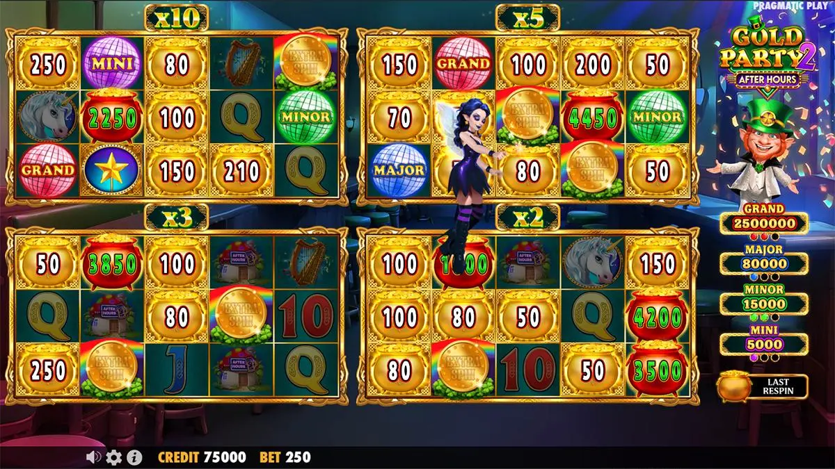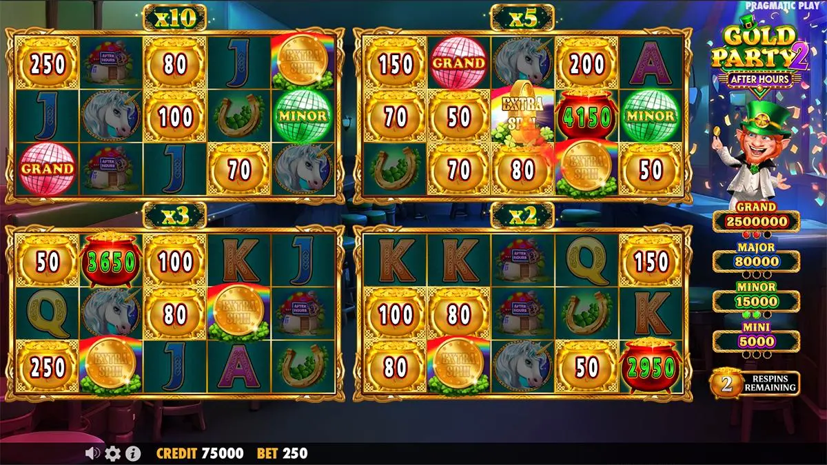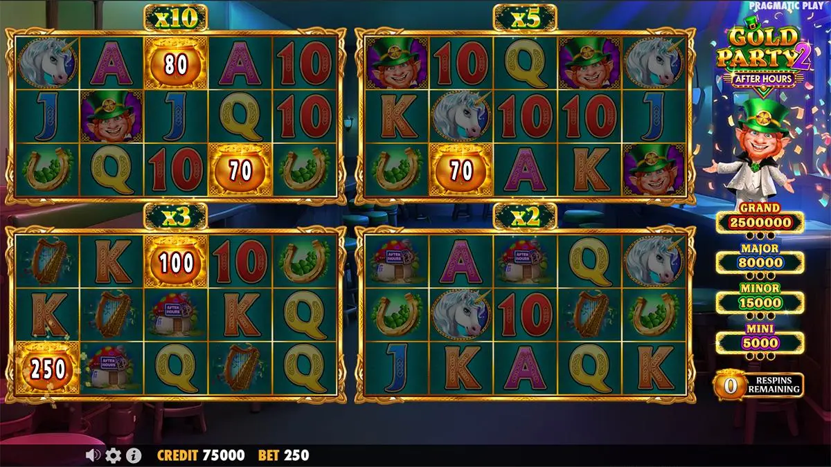 Gold Party 2 – After Hours is packed with dynamic features like Copy Reels and Wild Multipliers that spice up the base game, while the Money Respin is a multi-grid bonus extravaganza. Players also have access to the Ante Bet and Feature Buy for quicker entry into the bonus round.