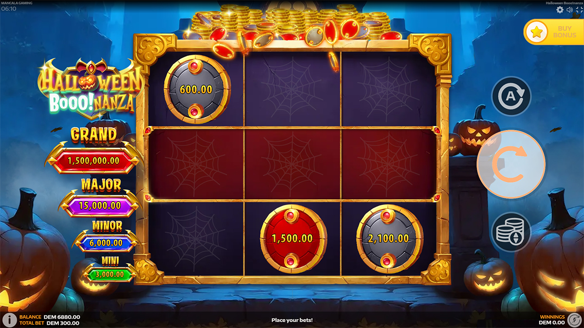 The demo version of Halloween Booo!nanza is an excellent way for players to familiarize themselves with its unique mechanics and high-volatility structure without risking real money. This free-to-play mode retains all the core features, including respins, jackpots, and the Buy Bonus option, offering a complete gameplay experience. It’s ideal for understanding symbol interactions, testing betting strategies, and observing how the coin-collection mechanic affects variance. Additionally, the demo version allows users to appreciate Mancala’s vivid design and immersive soundscape before committing to real wagers. For newcomers, it serves as a learning tool; for veterans, it’s a playground for refining strategies and exploring payout probabilities.