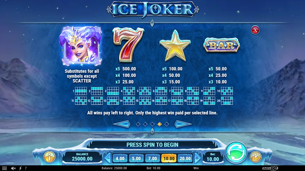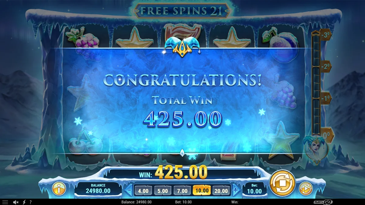 Keep an eye on the Ice Joker Wild—she triggers the Frozen Spins—and the snowflake Scatter, which activates the Winter’s Wonder Wheel. High-paying symbols include Stars, Sevens, and Grapes.