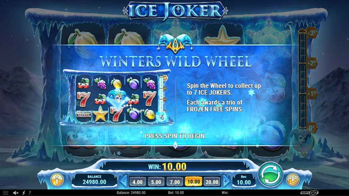There isn’t a traditional free spins round with a predefined number of bonus spins. Instead, Ice Joker breaks the mold by integrating spins into the Frozen Spins and Wonder Wheel mechanics. Here’s how it works: