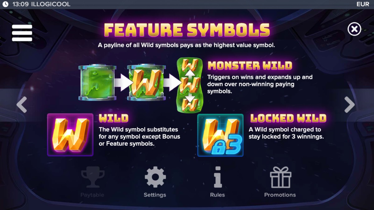 Monster Wilds | Triggered from the Cool Reel, these expand vertically to cover non-winning symbols. |