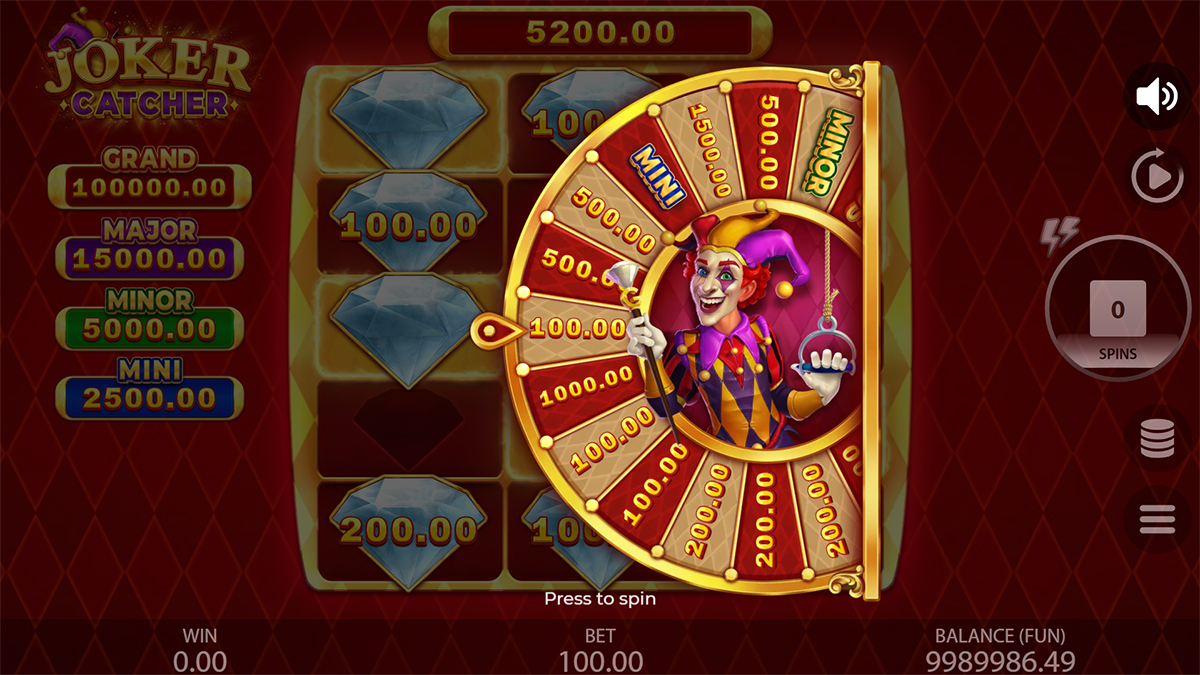 Mechanically, Joker Catcher stands out due to its real-time collection system driven by the central Joker Wild. The Joker functions not only as a traditional Wild symbol but also as a collector that immediately gathers prizes, jackpots, and feature triggers from any Catch Frame on the reels. This creates a strong cause-and-effect loop where players instantly see rewards being absorbed, reinforcing engagement and clarity. Additional mechanics, such as the Lucky Wheel and Bonus Game, can trigger alongside standard spins, allowing multiple systems to operate in parallel without slowing gameplay. The design supports escalating value through upgrades, extra spins, and jackpot progression, ensuring that longer sessions feel rewarding rather than repetitive. These mechanics work together seamlessly, making Joker Catcher feel dynamic, interactive, and far more engaging than a standard reel-spinning slot.