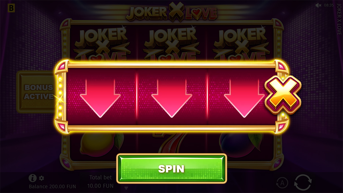 Bonus Symbols Three Joker X Love symbols on reels 1-2-3 trigger the Bonus feature.