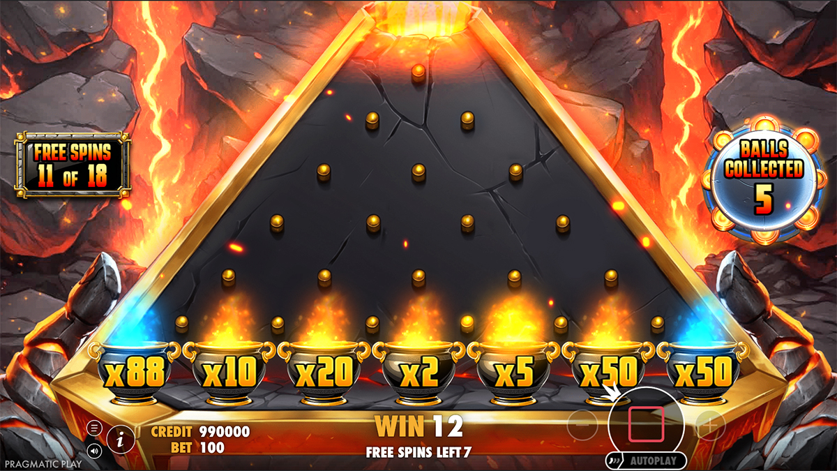 Lava Balls Wild Multiplier: Triggers a Plinko-style drop that awards multipliers or activates Free Spins.