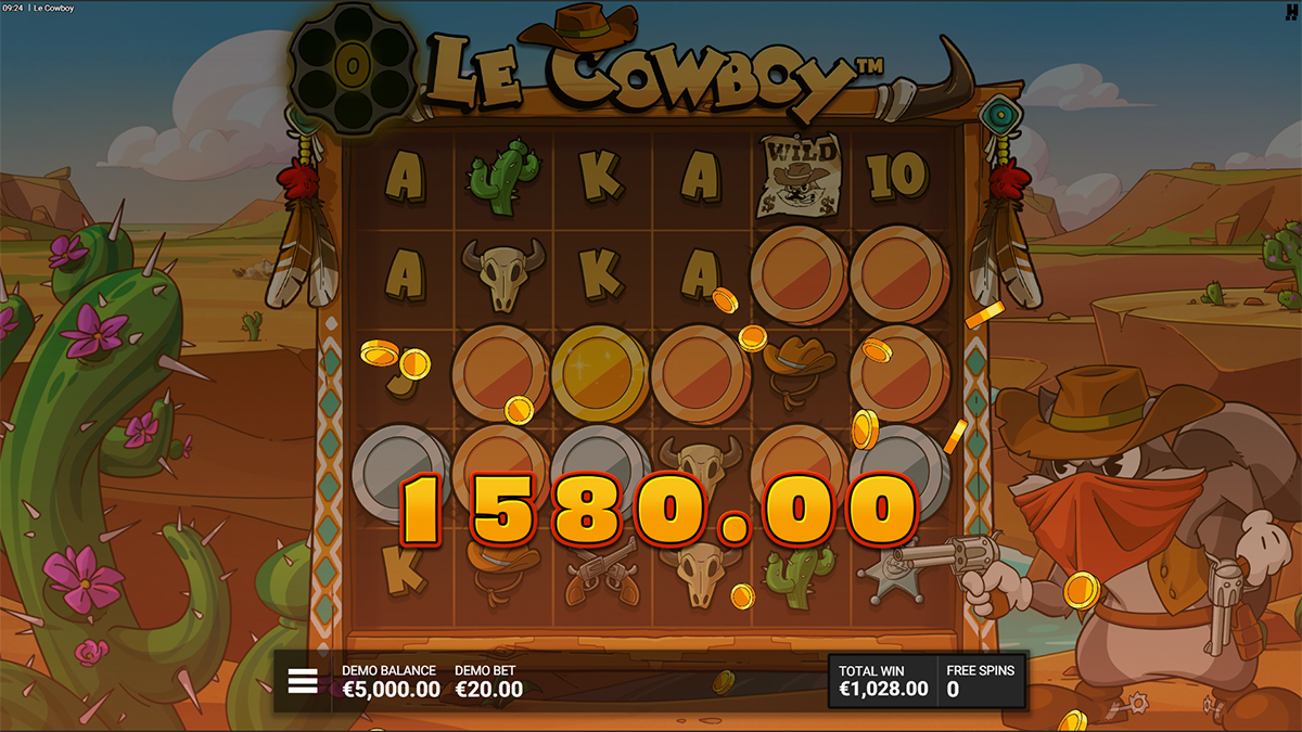 Le Cowboy features a medium volatility level, striking the perfect balance between frequent smaller wins and the potential for big payouts. This volatility profile makes it ideal for players seeking consistent excitement without extreme risk. It delivers steady gameplay while keeping the possibility of major rewards within reach.