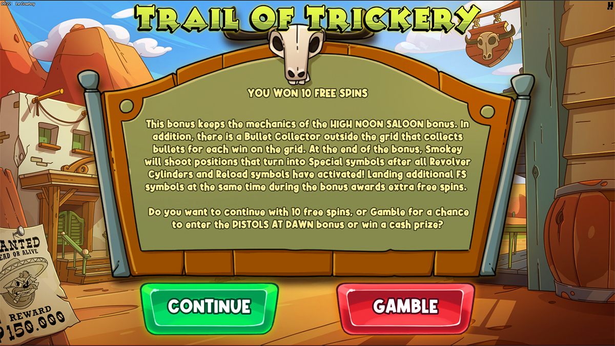 Bonus Games: Includes High Noon Saloon, Trail of Trickery, and Pistols at Dawn rounds.