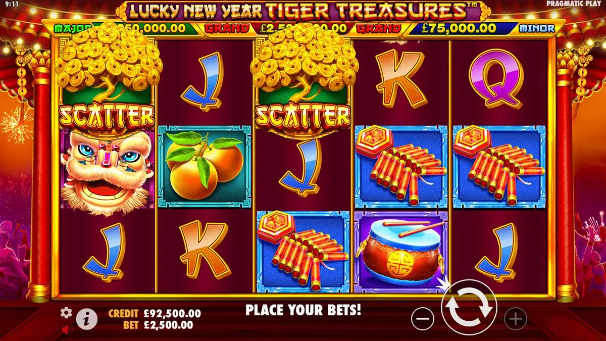 Lucky New Year – Tiger Treasures has a medium-high volatility. This means the game offers a balance between frequent smaller wins and the potential for larger payouts, making it suitable for players who enjoy a mix of steady rewards and the chance for significant wins.
