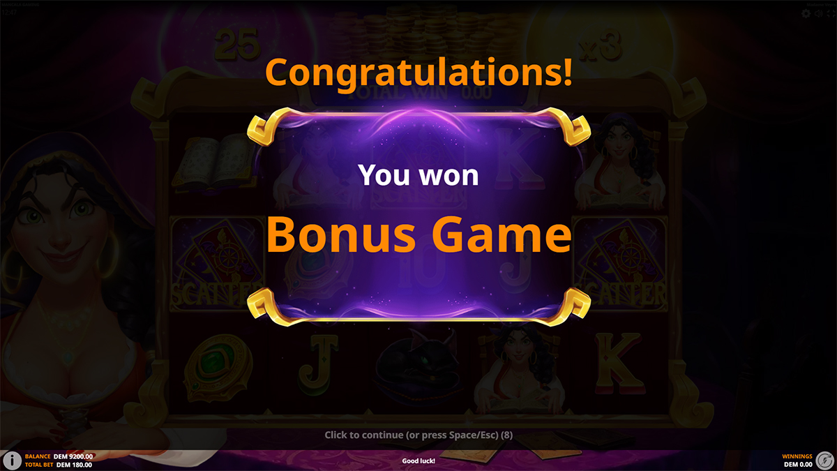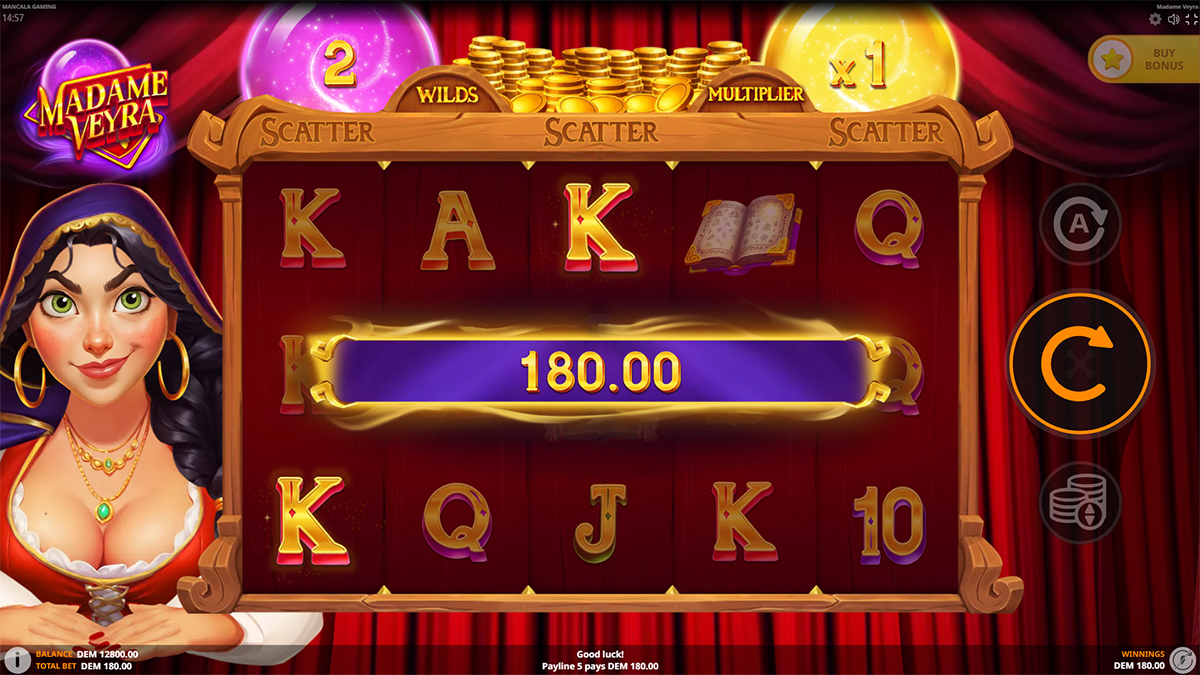 Madame Veyra offers a flexible betting range that starts from a minimum bet of €/$0.20 and goes up to a maximum bet of €/$180 per spin. This wide range makes the slot accessible to low-stakes players while also catering to high rollers seeking bigger potential payouts. The scalable betting system ensures that players can tailor their experience according to their budget and playstyle.
