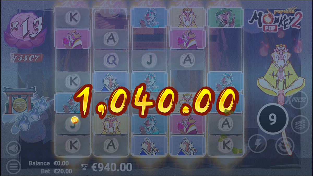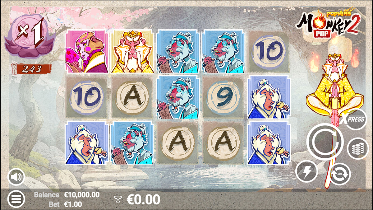 The high-paying monkey monk symbols are the most valuable and produce the strongest payouts during expansions. Scatters are equally important because they unlock the free spins bonus and its enhanced mechanics. Low-paying royal symbols help trigger PopWins chains that build the grid for bigger opportunities.