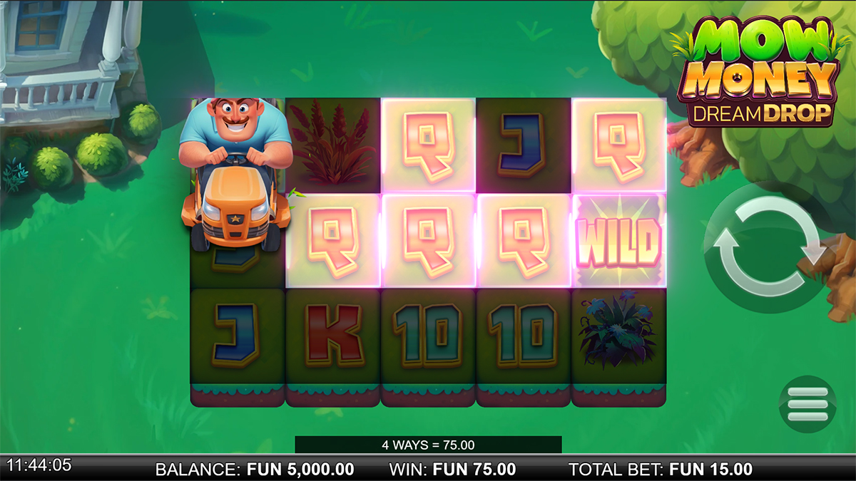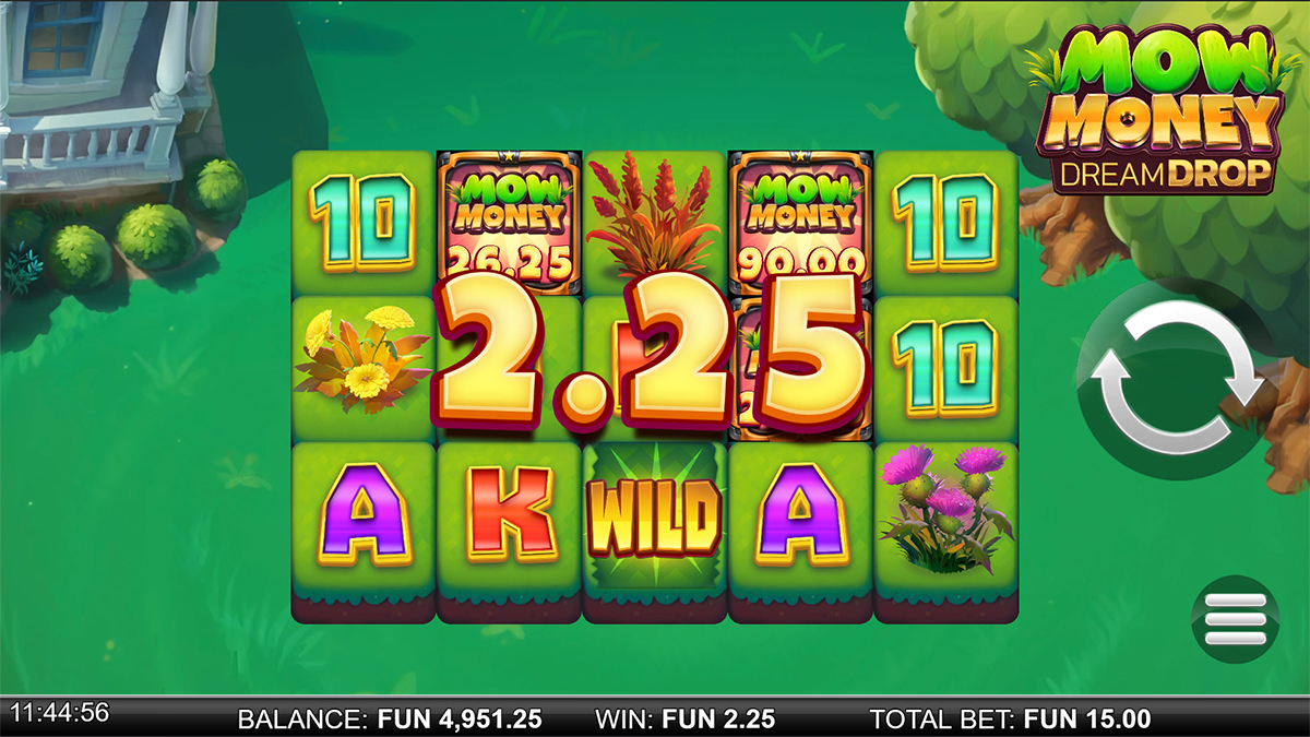The combination of high, low, and special symbols in Mow Money Dream Drop perfectly complements its quirky mowing theme, ensuring that every symbol contributes meaningfully to the fast-paced, high-energy gameplay.
