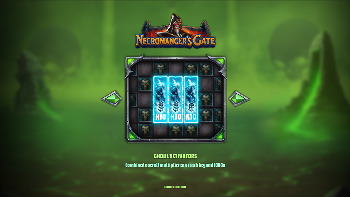 Necromancer’s Gate invites players into a shadowy underworld where forbidden magic, cursed relics, and undead forces collide to create a high-stakes slot experience packed with dark fantasy atmosphere. Set against a haunting green mist backdrop and guarded by a powerful necromancer, the game revolves around harnessing corrupted energy to unlock massive rewards and rare bonus mechanics. With a towering maximum win of 25,000x the stake and a design centered around mysterious skulls, ghoul activators, and magical artefacts, this slot stands out as a feature-rich title that balances cinematic presentation with deep gameplay layers. Every spin feels like stepping deeper into the abyss, where powerful spells can transform modest results into explosive payouts, offering players an immersive journey driven by both risk and high reward potential.