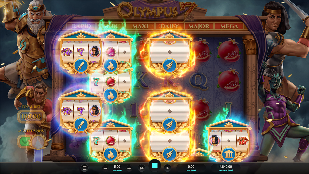 Olympus Respin – Retriggers all active Mini Slots for additional spins