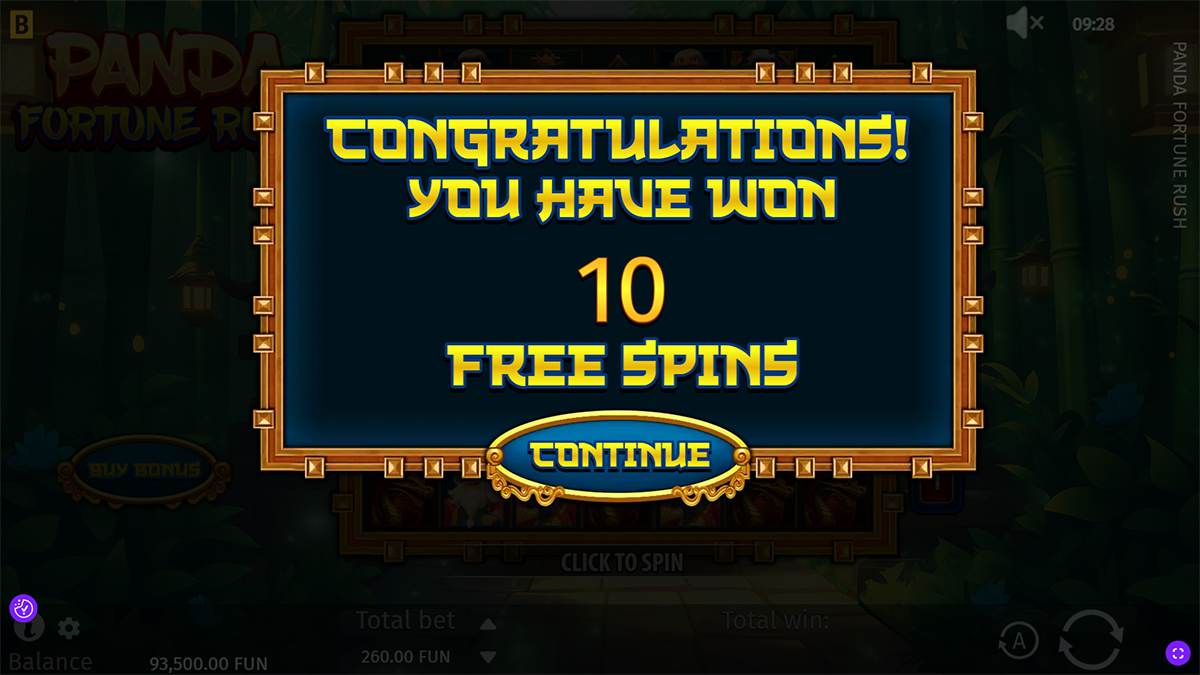 Yes, Panda Fortune Rush includes a Free Spins feature that adds extra excitement to the gameplay. The bonus round is triggered when 12 or more Scatter symbols land during a single spin. Players receive 10 free spins, with the possibility to retrigger for additional rounds.