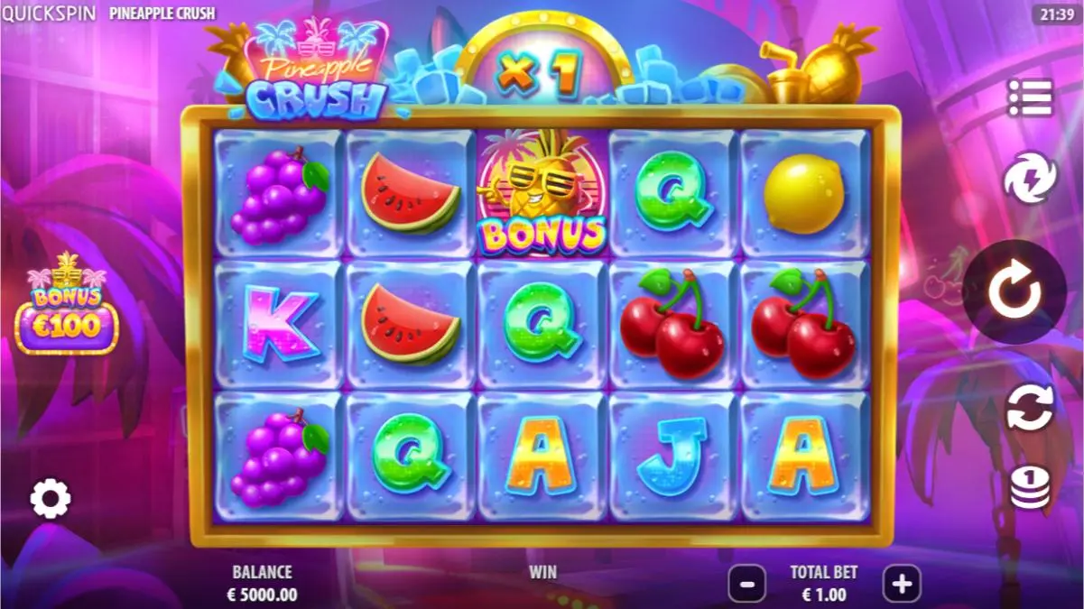 Pineapple Crush by Quickspin brings a refreshing twist to classic fruit-themed slots with its vibrant design, cascading reels, and rewarding multipliers. The game’s combination of colorful visuals, exciting Free Spins, and the potential for large wins through rising multipliers makes it stand out in a crowded market. Thanks to its wide betting range and mobile optimization, it appeals to both casual players and high rollers alike. Overall, Pineapple Crush is a lively and engaging slot that offers plenty of action for players looking for dynamic gameplay and big win potential.