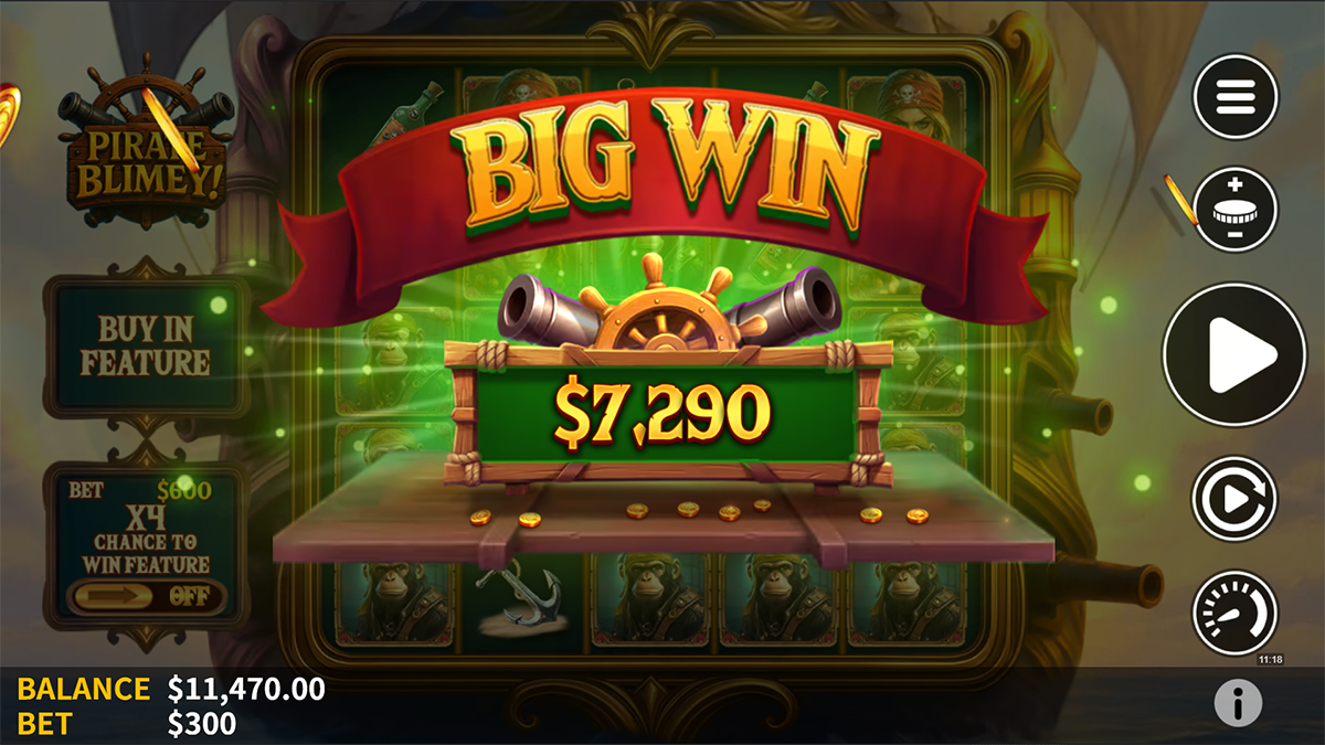 Pirate Blimey offers a medium volatility level, balancing frequent smaller wins with occasional big payouts. This ensures consistent engagement while still leaving room for thrilling high-value surprises. It’s a perfect choice for players who enjoy steady gameplay mixed with bursts of excitement during special features.