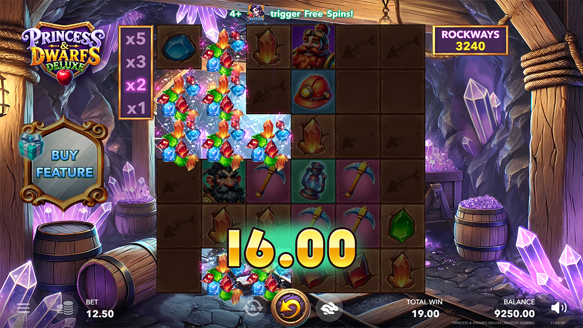 Princess & Dwarfs Deluxe combines innovative mechanics to ensure gameplay remains fresh and engaging. The Rockways system guarantees every spin is unique, the Rockfall feature fuels chain reactions with rising multipliers, and the Risk’n’Buy option places strategy directly in the player’s hands. Together, these features elevate the slot into a thrilling mix of luck, timing, and decision-making.