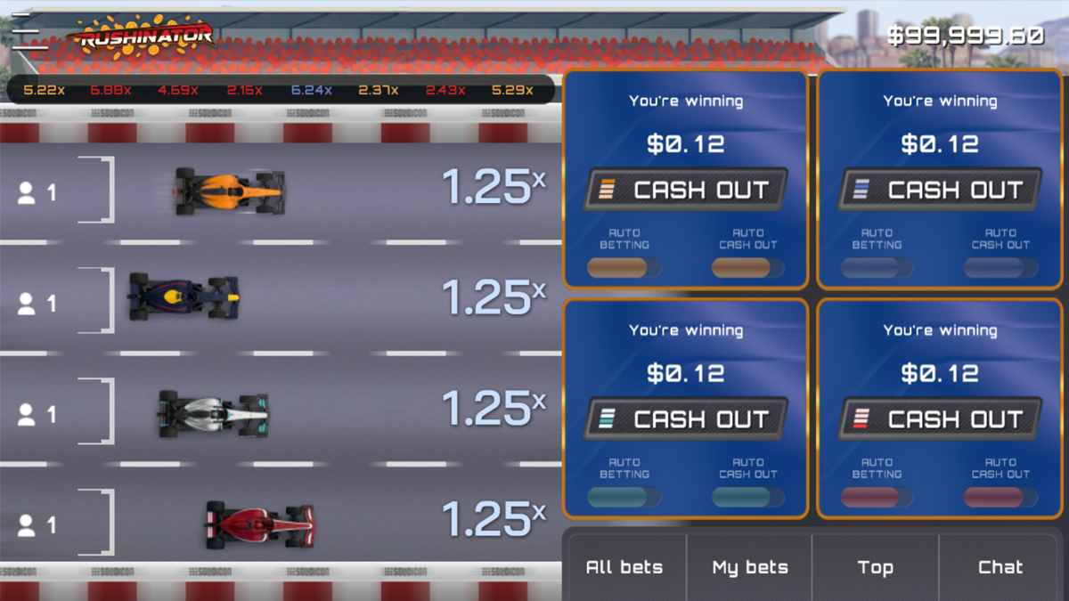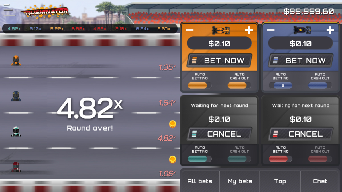 Mastering the pace of Rushinator requires a blend of cold calculation and hair-trigger reflexes, especially when utilizing the game's advanced automated tools. For players who prefer a disciplined approach to this high-volatility environment, the Auto Cash-Out feature is an essential mechanic. This allows you to pre-set a target multiplier—such as 2.0x or 5.0x—at which the game will automatically bank your profits the microsecond the car reaches that milestone. Additionally, seasoned racers often utilize the Dual Bet interface, allowing them to place two independent wagers on the exact same race. This strategy is a favorite in the 2026 crash community, as it allows you to cash out one bet early to cover your initial costs, while letting the second bet “ride” into the high-multiplier territory to chase that elusive 10,000x jackpot.