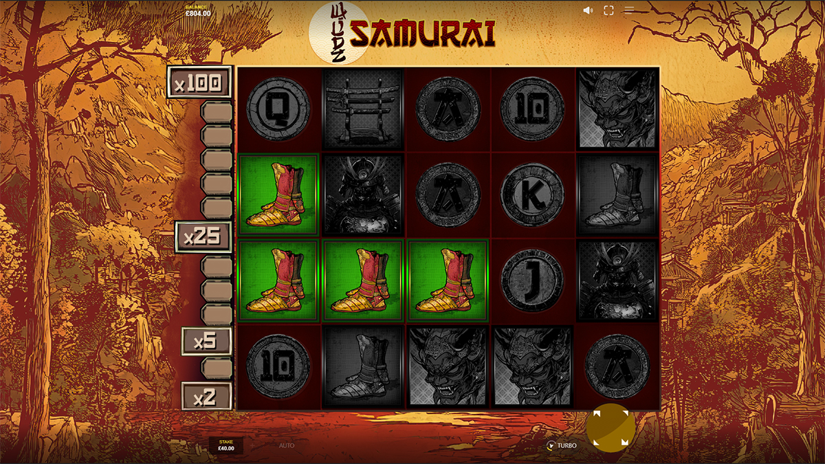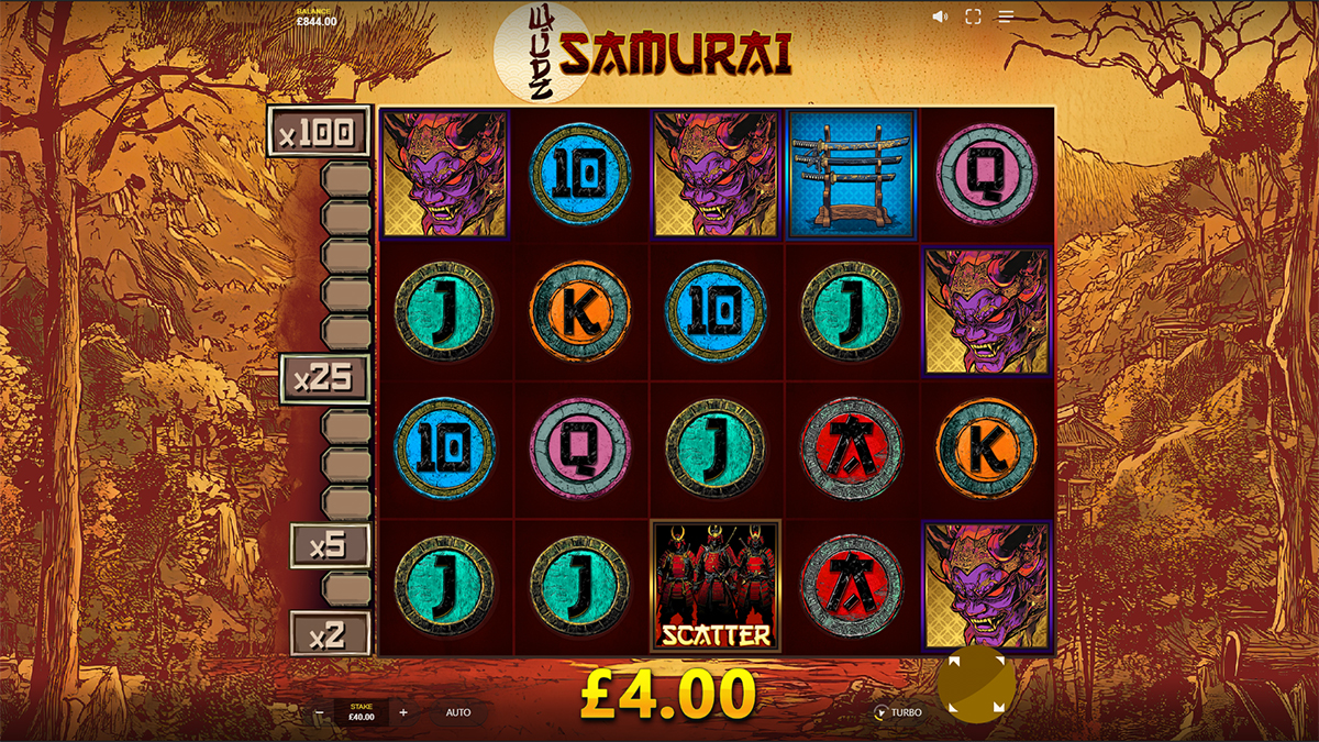 The gameplay of Samurai Wildz revolves around its 5-reel, 4-row, 20-payline structure, offering a familiar layout that is easy to understand yet dynamic enough to produce engaging outcomes. Wins form from left to right starting on the first reel, and the overall flow of the game is built around the tension created by wilds, scatters, and the potential rise of the multiplier ladder. The game’s pacing is intentionally designed to feel unpredictable, with relatively modest hit frequency but high-impact potential when the right symbols align. Visually, the gameplay is supported by a calm yet dramatic environment inspired by old Japanese paintings, allowing players to move fluidly between serenity and adrenaline as the reels spin. Audio cues emphasize both its thematic roots and its modern slot dynamics, contributing to a sensory experience that complements the mechanical thrills. Whether in the base game or in bonus mode, the gameplay maintains clarity while constantly pushing players toward high-stakes moments.